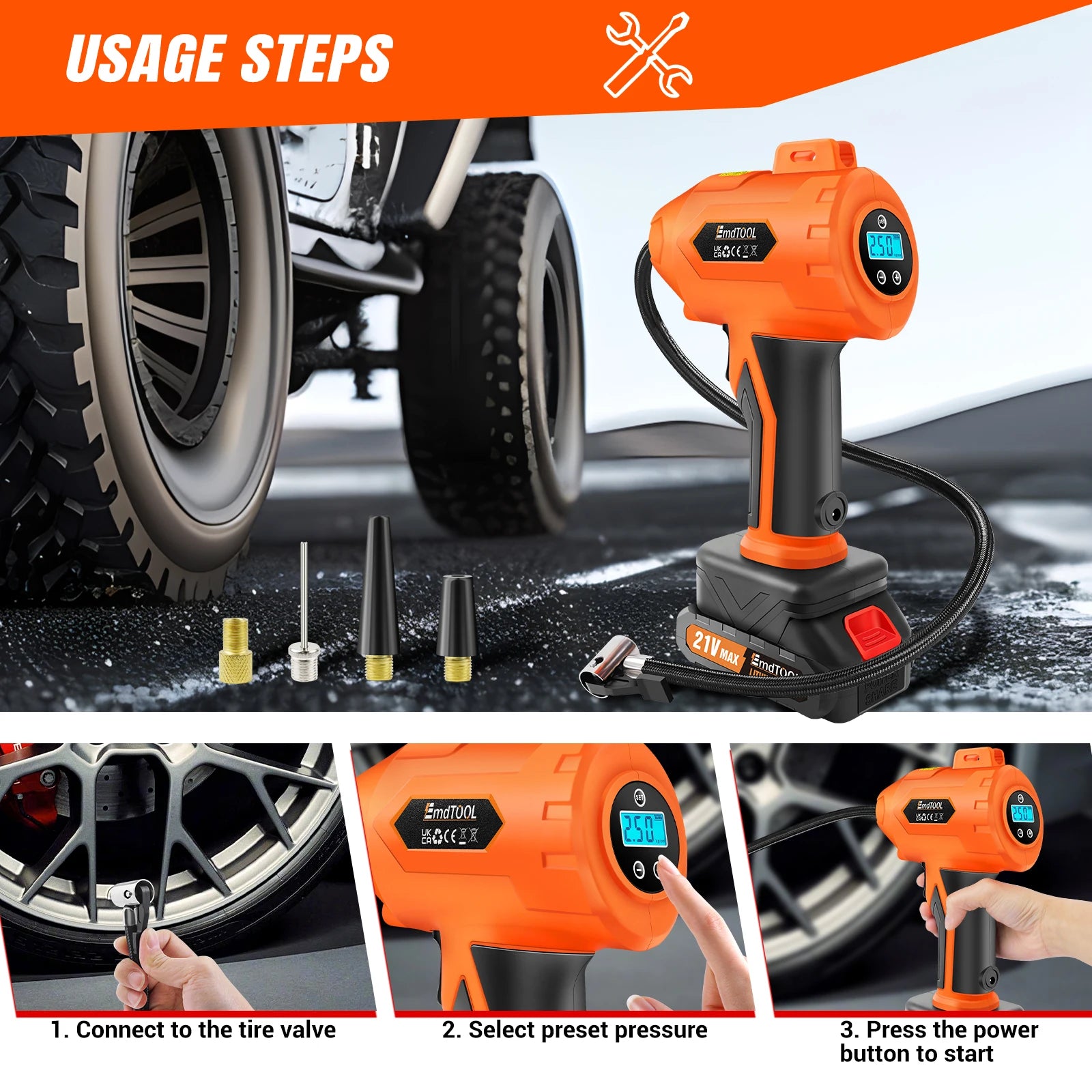 Gonfiatore per pneumatici senza fili Compressore d'aria Pompa per pneumatici per auto alimentata a batteria con manometro digitale e luce a LED per auto, moto, bici -