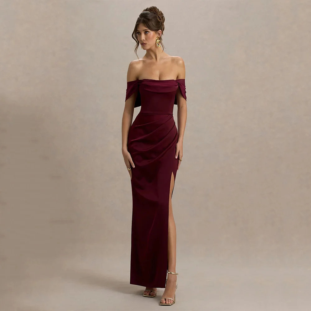 ABITO FORU Elegante abito da sera rosso in jersey per lungo fino al pavimento con colletto a una parola Prom Party Guaina Abiti da festa personalizzati