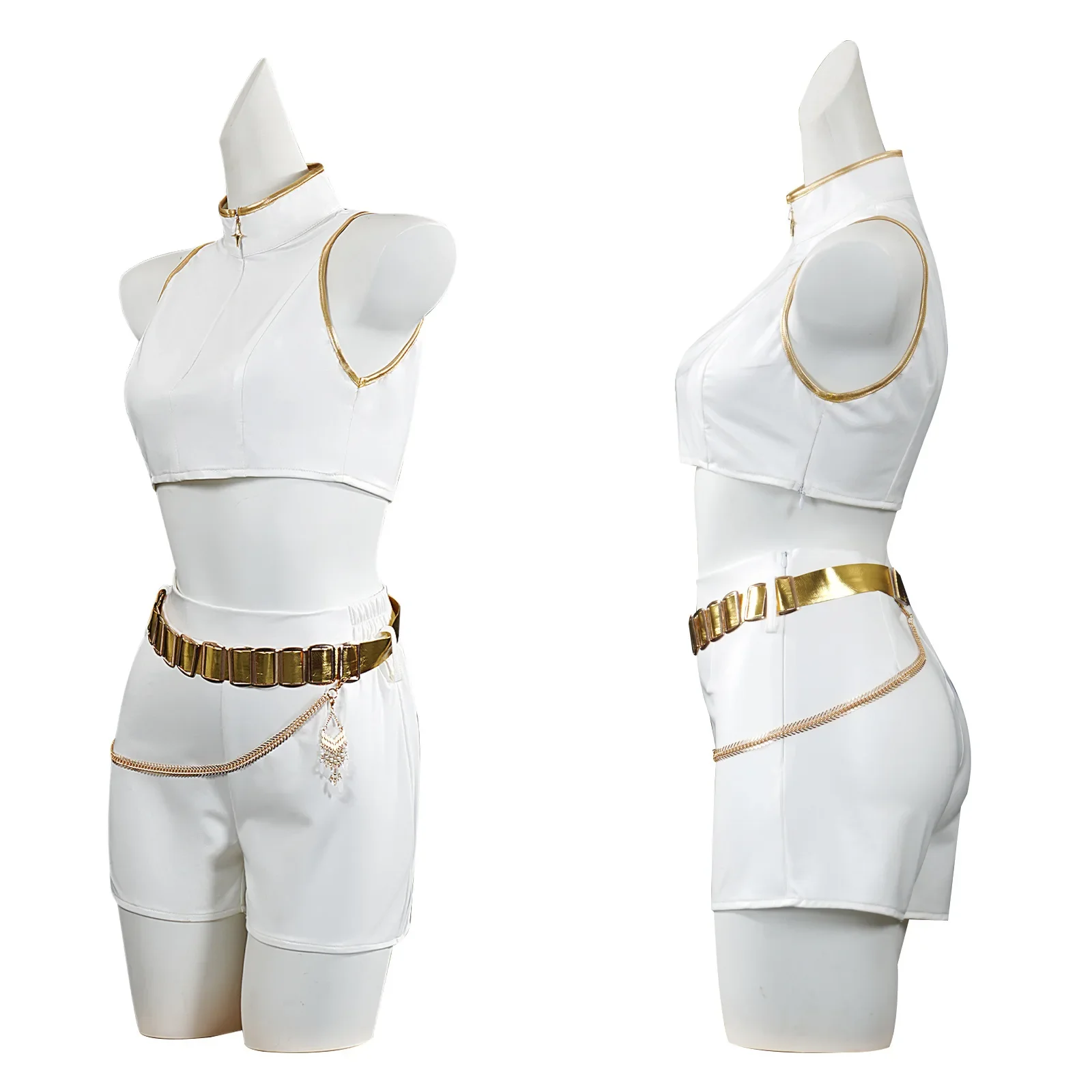 Costume cosplay di Halloween per adulti, chemise blanche, col alto, canotta corte, corto, ceinture dorée, tenue d'halloween