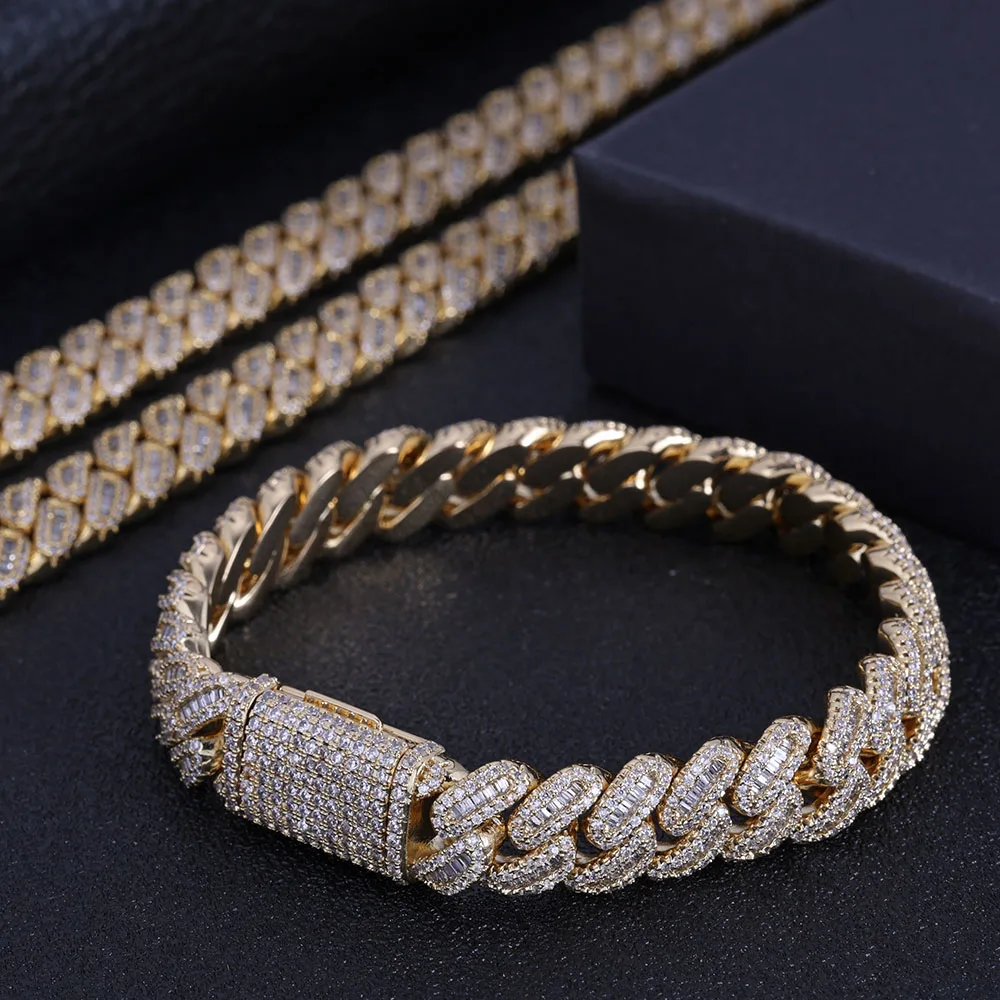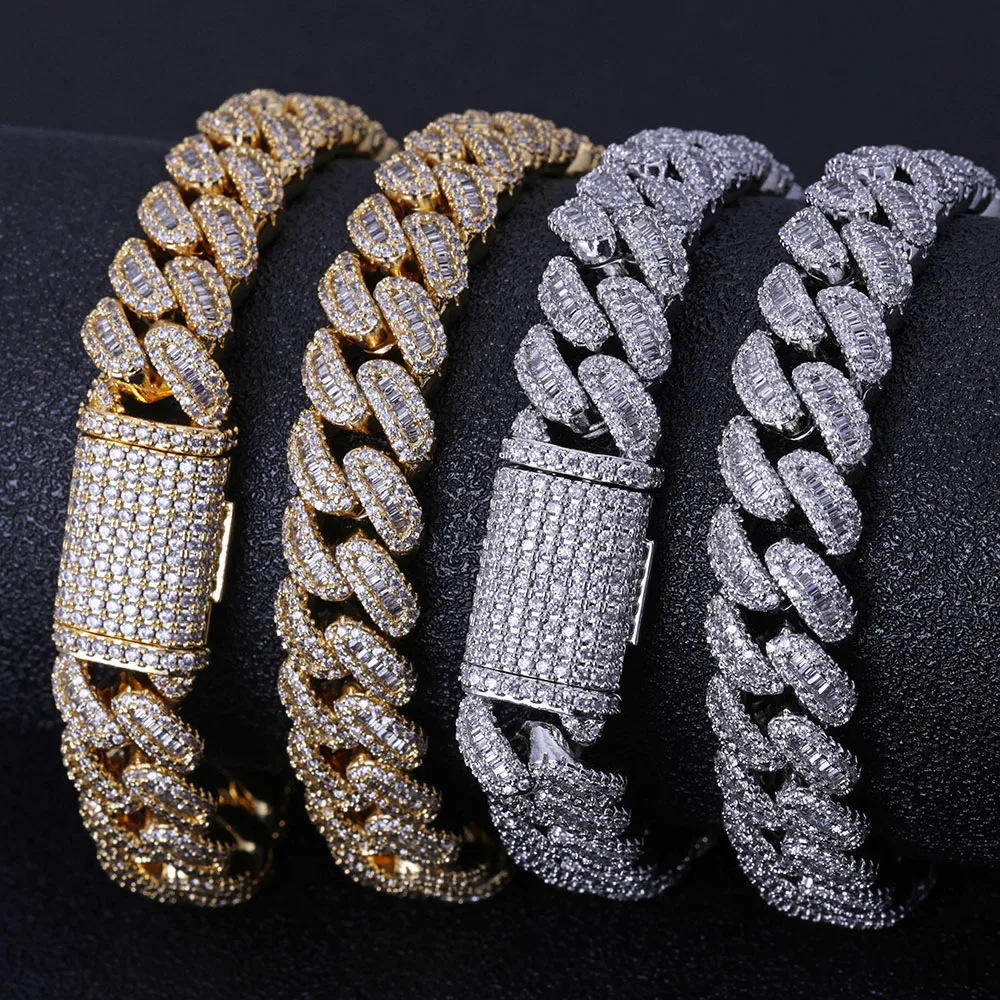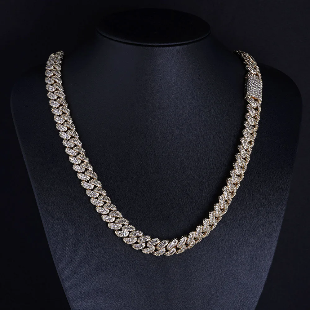 NUOYA Gioielli Hip Hop di alta qualità 12mm Bling Ghiacciato Cz Rettangolo Punta di diamante Impostazione Collana a maglie cubane Homme | |